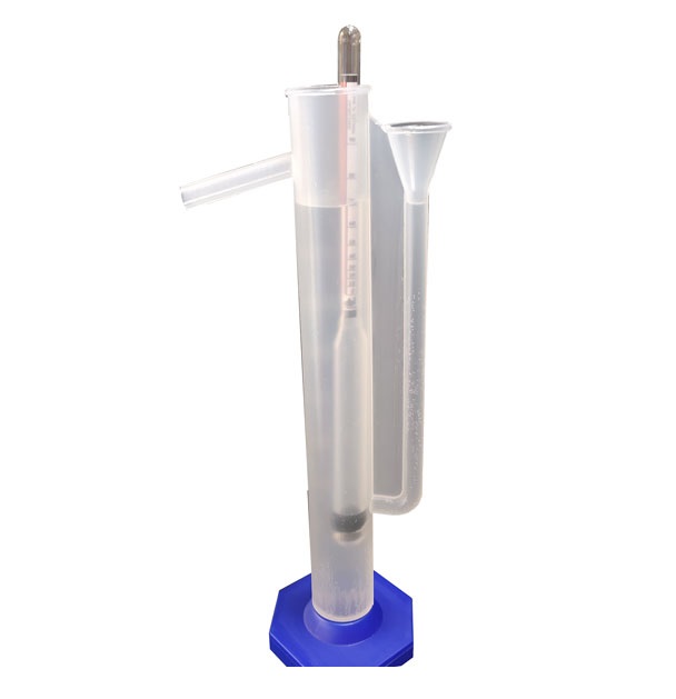 همچنین در سمت دیگر، یک لوله نازکاستوانهای شکل دیگر به استوانه اصلی متصل شده که بالای آن به صورت قیف است و محل ورود مایع می باشد.