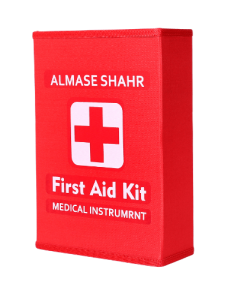 محتویات جعبه کمکهای اولیه :باند دور بافت، باند کشی، پد الکلی، چسب زخم، دستکش، گاز استریل، گاز وازلینه