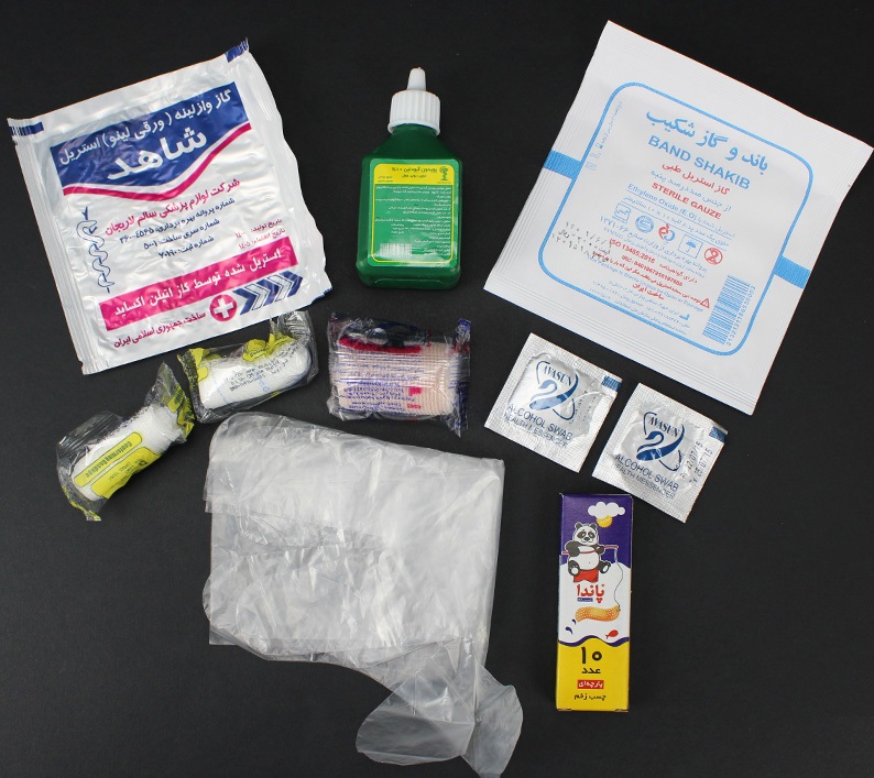 درون این جعبه وسایلی از قبیل چسب زخم , گاز استریل بتادین , باند کشی , پد الکلی , پنبه , باند دور بافت وجود دارد. این جعبه حاوی مجموعهای کامل از وسایلی است که مناسب برای اقدامات درمانی مقدماتی هستند و برای کمک به فرد آسیب دیده جهت جلوگیری از خونریزی، ضدعفونی کردن زخم و دیگر اقدامات اولیه در نظر گرفته شده است؛ همچنین جعبه کمکهای اولیه حامی بهراحتی قابل حمل است. محصولی کارآمد در زمان های حساس و حیاتی.