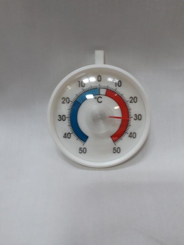 دماسنج عقربه ای یخچال (ترمومتر یخچال ) دارای محفظه چسبی و قلابی جهت نصب بر روی یخچال های صنعتی و یخچال های رستوران ها وسوپر مارکت و قرار گیری در محیط با رنج دمای -۵۰ تا +50+ درجه سانتیگراد میباشند.