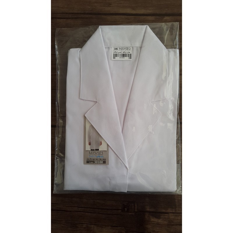پارچه این محصول کجراه می باشد . از ویژگی های این محصول عدم ایجاد حساسیت و عدم تعریق و وزن کم میباشد.پارچه کجراه کمی ضخیم تر از پارچه تترون و ترگال میباشد که باعث افزایش عمر روپوش در برابر روپوشهای تترون و ترگال میگردد .برای انتخاب سایز مناسب ، یک روپوش قدیمی را از پشت اندازه گیری کنید و با جدول راهنمای سایز که در تصاویر روپوش قرار داده شده مقایسه کنید .دقت کنید حتما براساس جدول ، سایز خودتان را انتخاب کنید و سایز روپوش ، بامدل یا برند دیگر را معیار انتخاب سایز قرار ندهید . کالایی که دریافت میکنید دارای مارک های دوخته شده (خضرا) می باشد و نوع پارچه و کد محصول روی هر محصول قید شده است .