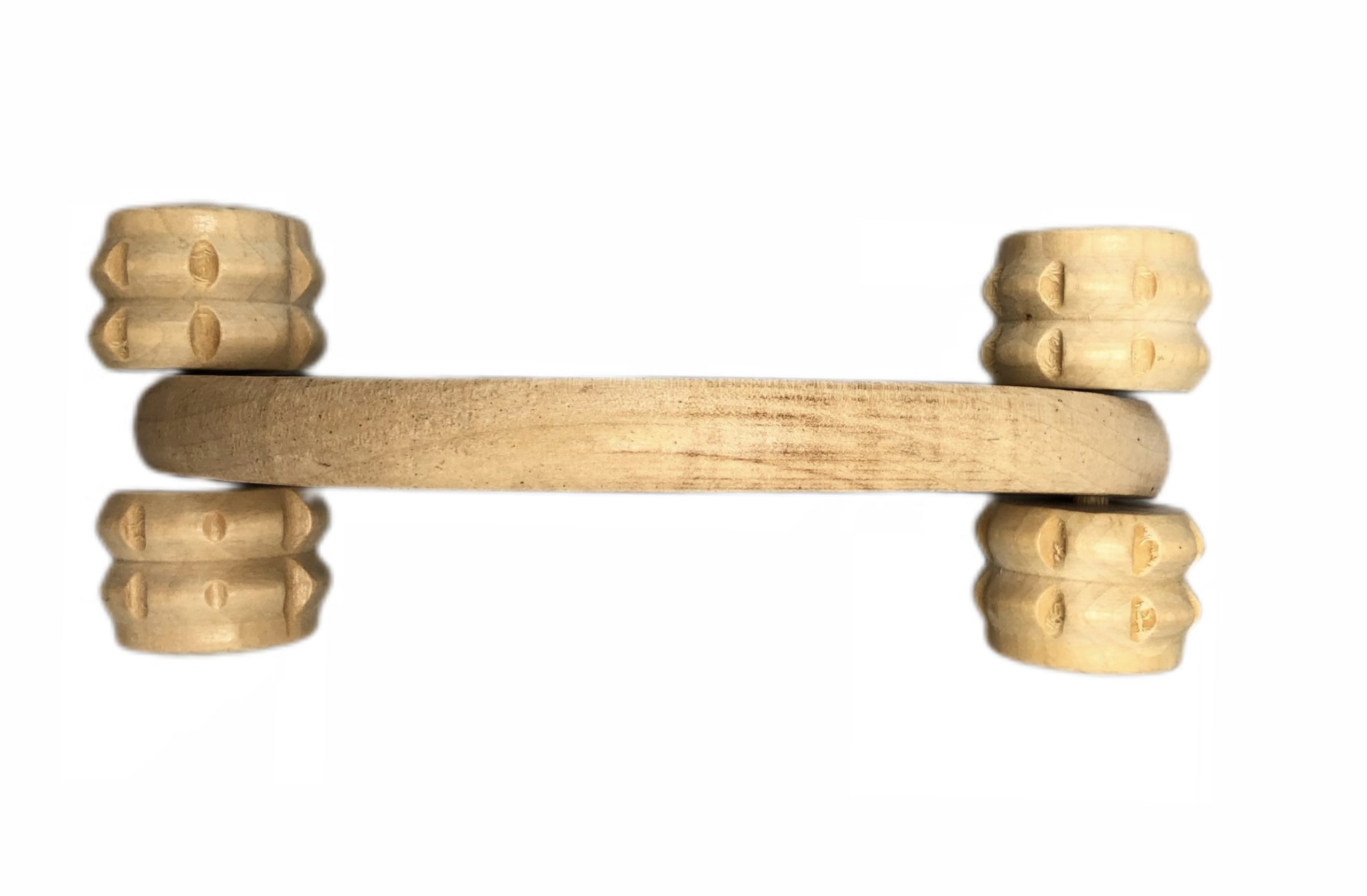 این وسیلهی دستی با چهار چرخ برجستهی چوبی و یک دستهی مرکزی طراحی شده تا با کمترین نیرو، بیشترین فشار ملایم و مؤثر را روی بافتهای عضلانی ایجاد کند.