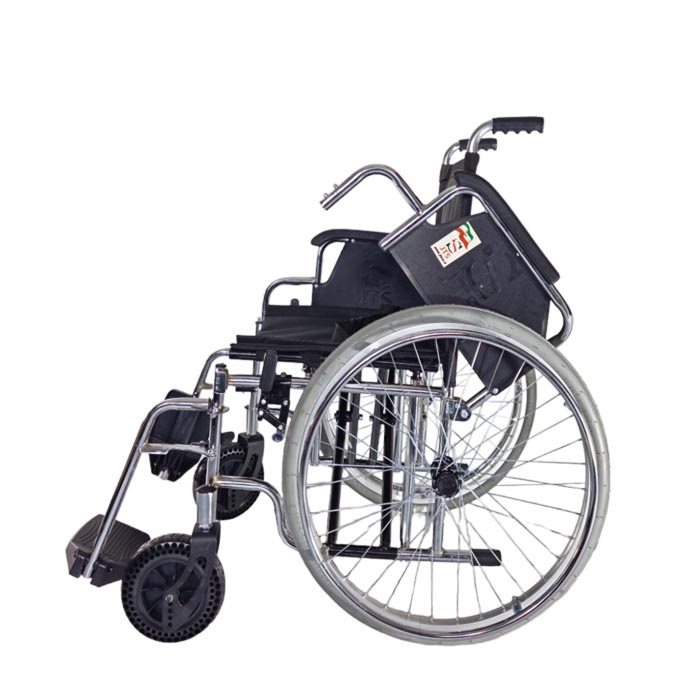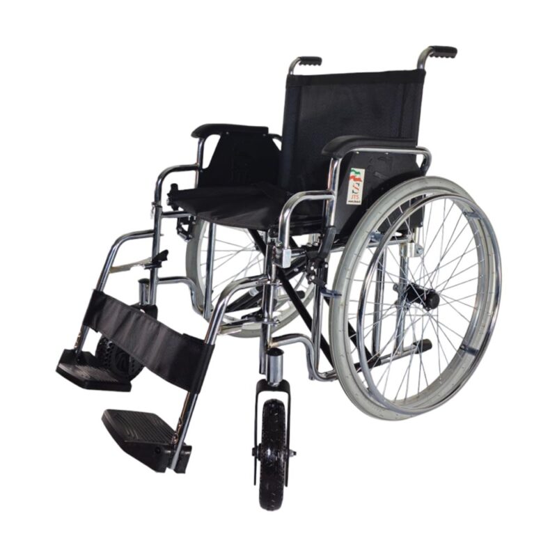 ویلچر 901M برند JTS یکی از مدلهای حرفهای و مقاوم برای استفاده خانگی و درمانی است. این ویلچر دارای بدنهی استیل آبکاریشده براق، چرخ عقب بادی با طوقه پرهای فلزی، زیر دستی متحرک، زیرپایی نشکن تاشو و پشتی تاشو از وسط میباشد که مجموعهای کامل از ویژگیهای موردنیاز برای راحتی بیمار و همراه را در خود دارد.