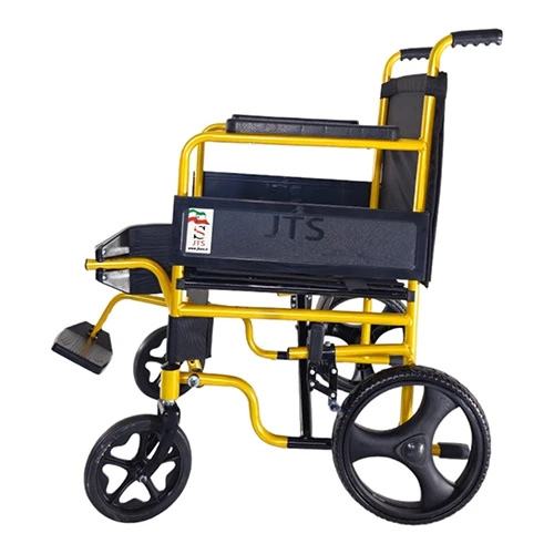 ویلچر ساده و مسافرتی جی تی اس “12-809R یکی از ارزان ترین ویلچر مسافرتی میباشد که در آن چرخ های جلو توپُر از جنس PU استفاده شده و دوشاخ این چرخ ها از جنس فولاد و مدرج است که قابلیت تنظیم ارتفاع هم دارد و چرخ های عقب این ویلچر در سایز 12 اینچ است که کار را برای حمل آسان میسازد این ویلچر در دسته ویلچر های ساده میباشد و با توجه به کوچک تر بودن چرخ ها باید ویلچر بیمار توسط فرد دیگری هدایت شود.نشیمنگاه و تکیه گاه این ویلچر از جنس برزنت میباشد و جاپایی آن نیز متحرک میباشد. در قسمت پشتی این ویلچر یک کیف قرار گرفته شده است.