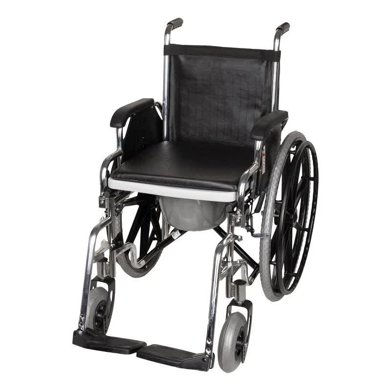 ویلچر ویلچر سه کاره ویلچر حمام و دستشویی جنس کفی و پشتی چرمی ویلچر ضد آب چرخ بزرگ ایرانی جی تی اس