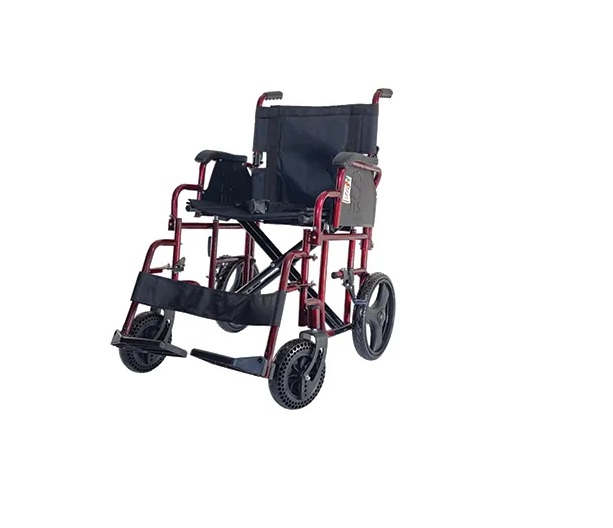 ویلچر مدل 908_12 برند JTS با طراحی ترانزیت، چرخهای عقب توپر ۱۲ اینچی، زیرپایی نشکن و تاشو، بدنه مستحکم و وزن سبک، گزینهای عالی برای استفاده در مراکز درمانی، منازل و جابجایی سریع بیماران در فضاهای محدود است.