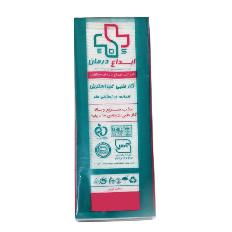 گاز طبی ساده غیر استریل سروش بدون بو و آلودگی فیزیکی بوده و در ابعاد ۱۰ در ۱۰ سانتیمتر و فاقد پرز یا سرنخ آزاد میباشد. درنتیجه در زخم ها و جراحات و در زمان پانسمان مزاحمتی ایجاد نخواهد کرد.