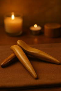 مدلی که در عکس میبینیم از چوب روغنخورده و صیقلخورده ساخته شده است. چوب در ماساژ یک مزیت مهم دارد: دمایش مثل سنگ سرد نیست، خشکی پلاستیک را ندارد و وقتی با روغن یا کرم ماساژ ترکیب شود، یک سرخوردن طبیعی، گرم و آرامشبخش ایجاد میکند. برای سالنهایی که دنبال حس “ارگانیک” و “طبیعی” هستند، گواشا میله ای بزرگ چوبی انتخاب مناسبی است، چون هم سبک است و هم در دست عرق نمیکند. ضمن اینکه اگر درمانگر بخواهد فشار را زیاد کند، چوب ضربه را نرمتر به بافت منتقل میکند و این برای مراجعهکنندهای که پوست حساسی دارد خیلی مهم است.